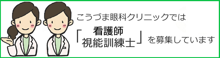 こうづま眼科クリニックでは、現在、「看護師・准看護士・視能訓練士」を募集しています。